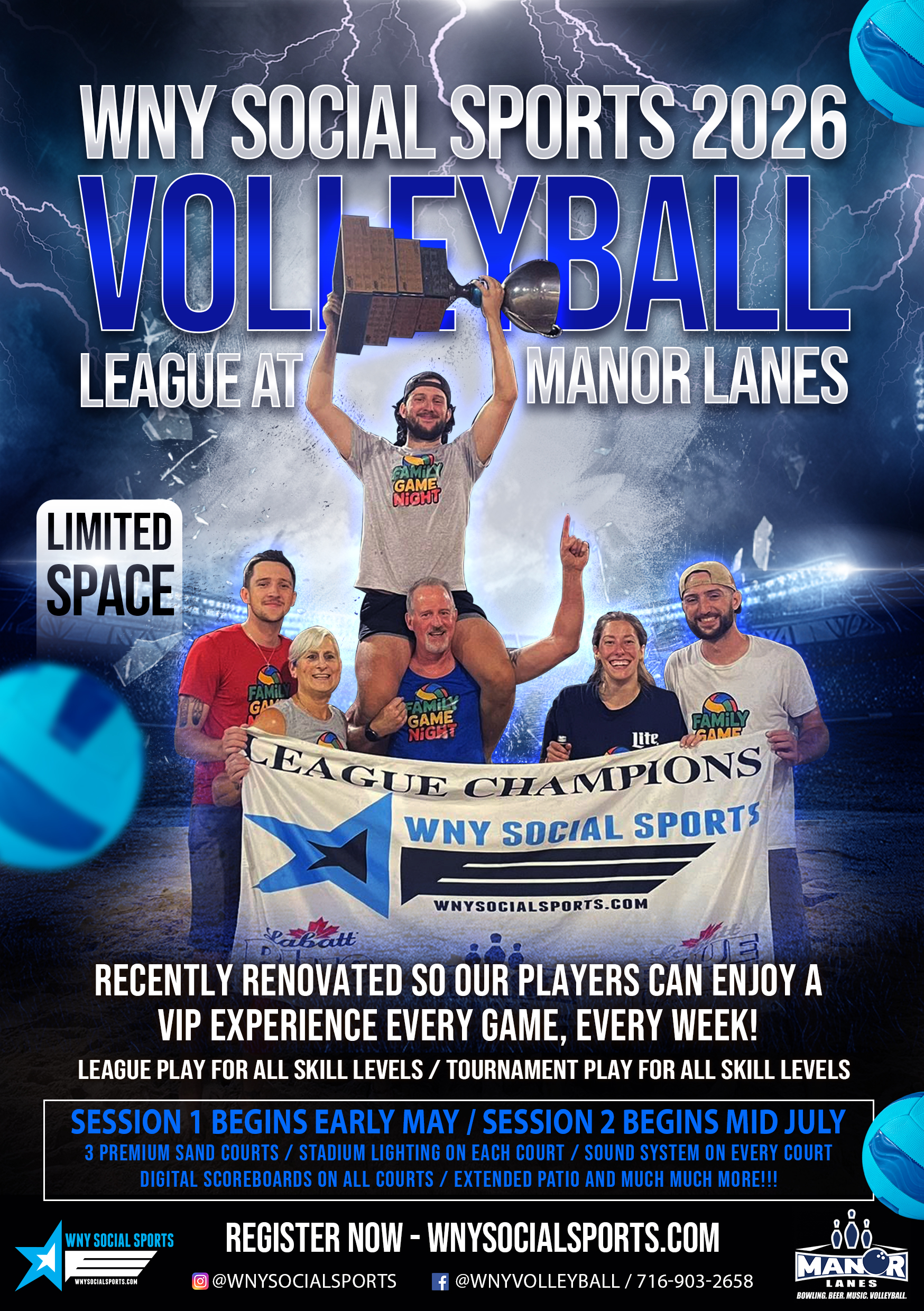 With these incredible upgrades, Manor Lanes is ready to host a legendary 2026 volleyball seasonāour biggest and best ever. Spots will fill fast, so donāt wait!